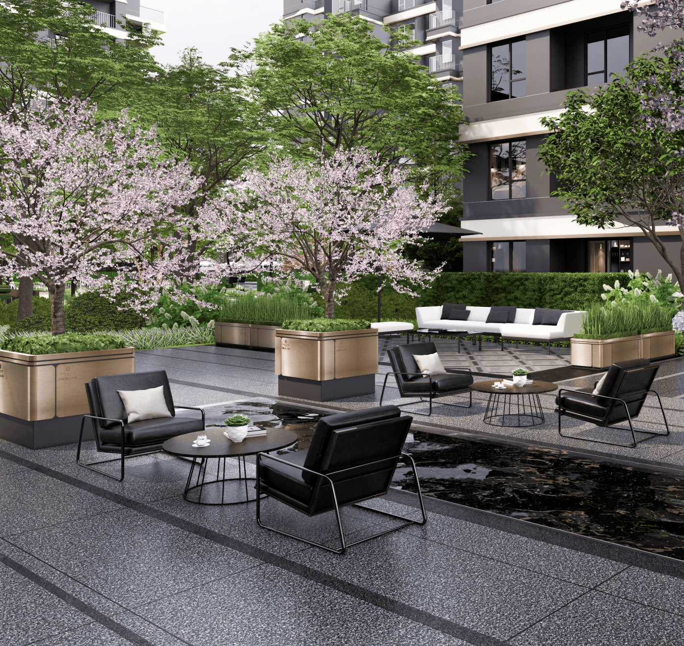 园林规划传承古长安外市内坊款式,曾获得London Design Awards伦敦设想、全球将来设想大Global Future Design Awards 2021等多项国际大。融合古今设想元素。