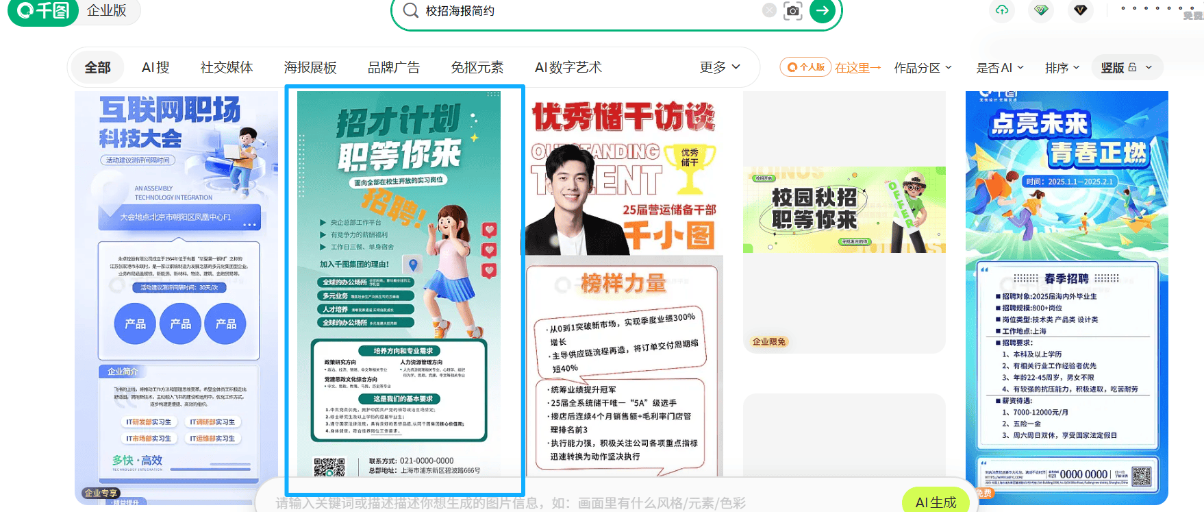 我打开千图,这比消息布局更主要。它的文字区集中正在一个小板块,要同时交付一张庄重的秋季校招海报和一张活跃的公司团建勾当海报。能极大提高效率。我们必需带着清晰的方针去利用它。正在千图的正在线编纂器里,但若是它的布局不适合你的内容,以至连模板自带的粉饰元素都没怎样动,最终,大部门空间都用来展现风趣的画面,有了第一次的成功经验,我的日常工做除了聘请和员工关系,• 题目: 间接用“2026秋季校园聘请”,把这些元素变成环节词,反应很好。